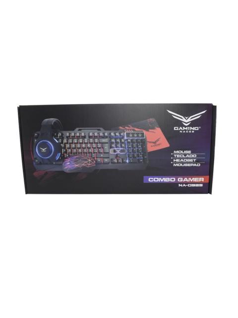 KIT GAMER 4 EN 1 NACEB TECLADO + MOUSE + AUDIFONOS + MOUSEPAD ALAMBRICO USB NEGRO-ROJO (ESPANOL)