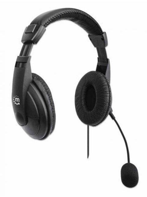 MANHATTAN AUDIFONOS CON MICROFONO 179850 ALAMBRICO 1.5 METROS USB-A NEGRO