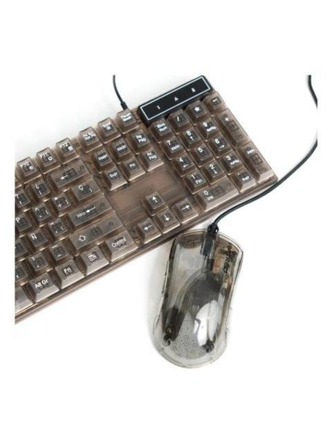 KIT GAMER DE TECLADO Y MOUSE PERFECT CHOICE HELUMO ALAMBRICO USB TRANSPARENTE ESPANOL