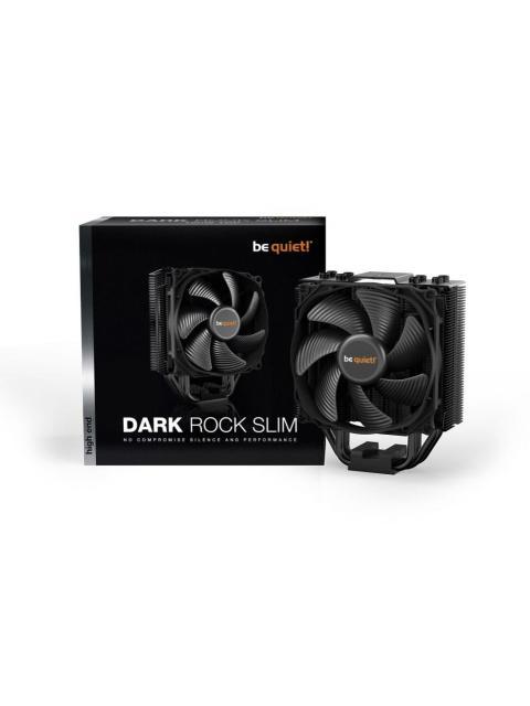 SILENCIO Y RENDIMIENTO SIN CONCESIONES Dark Rock Slim ofrece una capacidad de refrigeración excepcionalmente alta de 180W TDP y un funcionamiento prácticamente inaudible. Perfecto para construcciones de gama alta con espacio limitado. CONSTRUCCIÓN COMPACTA Refrigeración de alta capacidad en espacios pequeños El diseño compacto consigue una excelente disipación del calor en espacios pequeños. Dark Rock Slim es la elección ideal para construcciones de gama alta con espacio limitado. Gracias a su construcción compacta no bloquea las ranuras de memoria. FUNCIONAMIENTO PRÁCTICAMENTE INAUDIBLE Solo 23,6dB(A) incluso al 100 % de función PWM El ventilador Silent Wings 3 de 120mm presenta siete aletas con flujo de aire optimizado, un motor de seis polos que reduce las vibraciones y un soporte dinámico con líquido muy duradero. Montaje de ventilador desacoplado con elementos aislantes antivibración en el disipador térmico. CAPACIDAD DE REFRIGERACIÓN EXCEPCIONALMENTE ALTA Consigue una ratio increíble entre rendimiento y ruido Dark Rock Slim ofrece una impresionante potencia de 180W TDP y consigue temperaturas bajas incluso durante los períodos de máxima actividad de la CPU. También se puede añadir opcionalmente otro ventilador convencional adicional de 120 mm para una refrigeración aún mejor. DISEÑO DE ÚLTIMA GENERACIÓN Las principales funciones que permiten una refrigeración de gama alta Dark Rock Slim está equipado con cuatro tubos termosifón de 6 mm de última generación que maximizan la conductancia térmica. Las aletas de refrigeración con flujo de aire optimizado y perfil ondulado con puntitos en la superficie incrementan la circulación del aire. El revestimiento especial en color negro con partículas de cerámica permite una perfecta transferencia de calor.