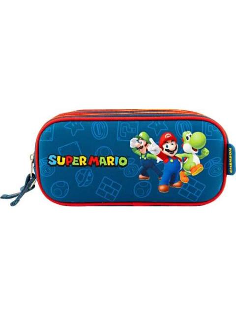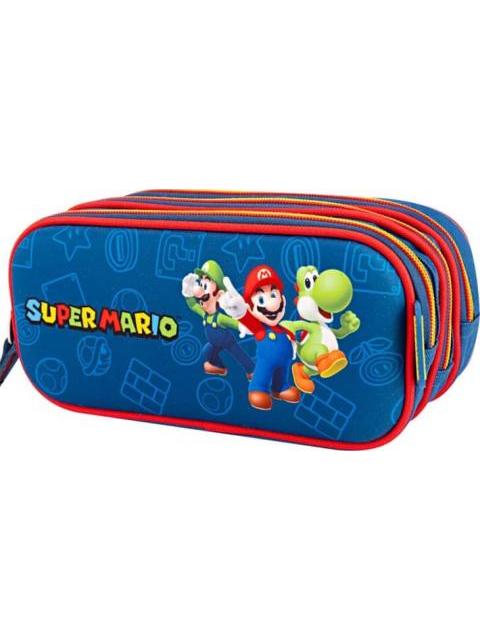 LAPICERA TRIPLE COMPARTIMENTO AZUL MARIO BROS