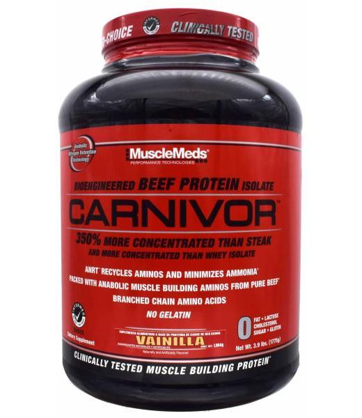 BENEFICIOS :CARNIVOR es la comida perfecta para ayudarte a construir un fisico muscular magro y rendir al maximo con 340 calorias densas en nutrientes con 141 oz de proteina 141 oz de carbohidratos y cero grasa Es libre de azucar lactosa y colesterolMODO DE EMPLEO :Para un delicioso batido de proteinas mezcle 1 cucharada de CARNIVOR con 180 240 ml de agua fria en una botella mezcladora La proteina puede formar espuma despues de mezclarse Este producto no esta destinado para diagnosticar tratar curar o prevenir ninguna enfermedad y no suple una alimentacion equilibradaINGREDIENTES :Creatina monohidratada BCAAS GKG AKG KIC gelatina hidrolizada maltodextrina trigliceridos de cadena media sabor natural artificial sal silice acesulfamo potasico y sucralosaRESTRICCIONES :NINGUNO