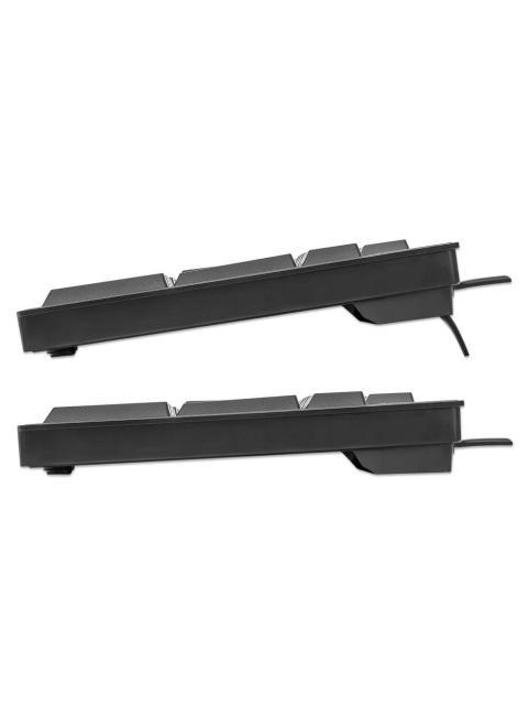 Un teclado diseñado para mejorar tu productividad El teclado con cable de Manhattan combina una excelente relación calidad-precio con comodidad y durabilidad. El teclado con cable ofrece una estructura de teclas robusta, teclas de gran capacidad de respuesta, un panel de comandos de fácil acceso y un teclado numérico de tamaño completo que proporciona la familiaridad inmediata del teclado moderno. Este impulsor de productividad está diseñado de manera inteligente para funcionar a la perfección con su configuración informática actual, para que su comodidad y disfrute estén asegurados. Ya sea que navegue por amplias hojas de cálculo, ingrese datos numéricos o escriba informes, el Teclado con cable de Manhattan es el reemplazo o complemento perfecto para cualquier configuración de computadora.